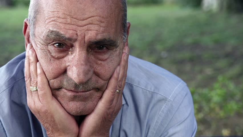 No smile, low hesitant voice, averted eyes.