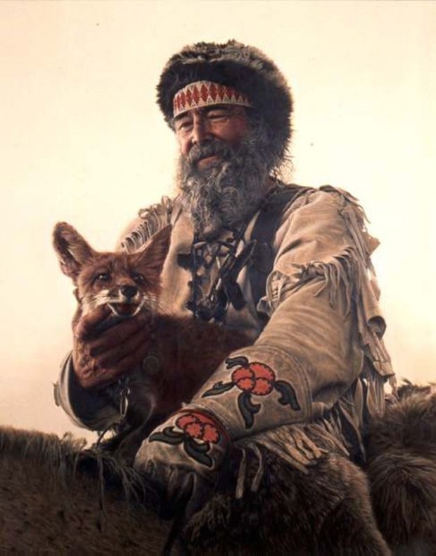 This man has overseen our house, no matter where we have been, for the last 41 years. His serene smile and kindly eyes have been a calming influence to me during turbulent times. There have been moments when I have wanted to shake his hand and sit by the fire with him. The name of the painting is Mountain Man and his Fox, by James Bama.