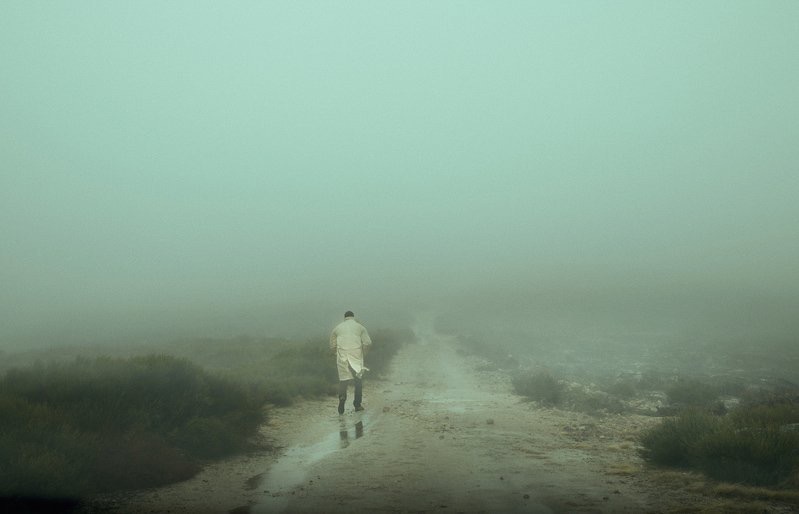 His fear, embodied. As the cat will hiss and spit, as the dog contrives a face and guttural growl upon the advent of the foreign other, he shows himself, thinking to do murder. Thinking to take their catch, feathered runners caught by the neck. Thinking his animal lust might be assuaged.