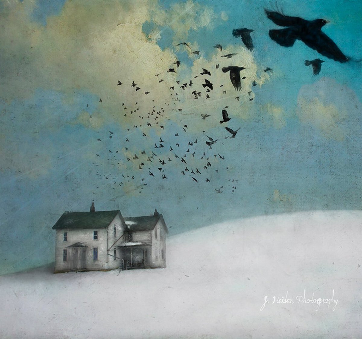 Mister whiskers, curled up in dream. You, in the faded recliner, the motors of your snore like a cheetah’s purr. The TV on mute in blue aquarium light. Outside the window, a borealis of feathering snow. And I, in a sated sigh, put my feet up too. We go gently into that goodnight.