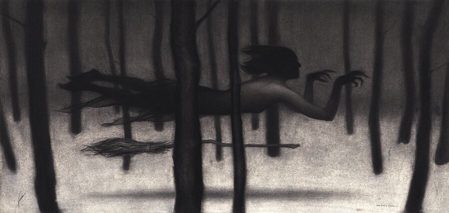 She slides through the forest